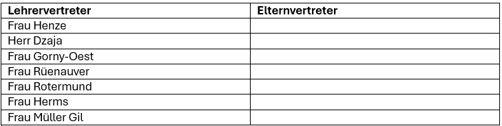I. Mitglieder der Schulkonferenz für das Schuljahr 2025/2026: